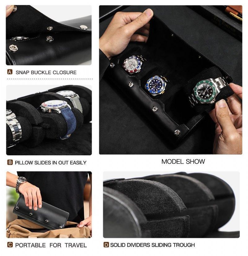 Az Egyedi Becsúsztatható Párnák Egyszerű Módszert Kínálnak Az Órák Tárolására És Eltávolítására, Biztosítva Azok Teljességét. Biztonságban Vannak Útközben Vagy Otthon Tárolva. A Puha Plüss Velúr Óvja Óráit A Karcolásoktól És Karcolásoktól.