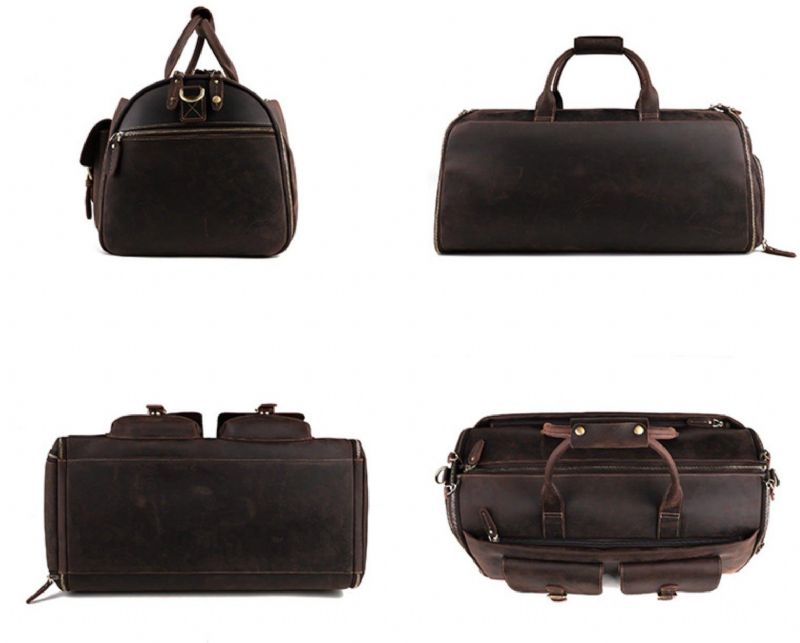 Ez Az Utazási Üzlethez Való Bőr Ruhatáska Őrült Lóbőrből Készült. Nyitva A Ruhatáskát, És Fektesse Ki.Nagyszerű Felakasztható Ruhatáska Utazáshoz.Ezzel A Függő Ruhatáskával Bármikor Gyűrődésmentes Öltöny Vagy Ruha Lehet.