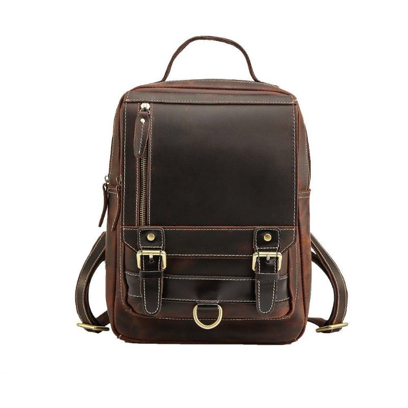 Ez A Vintage Férfi, Kisméretű Kabrió Bőr Hátizsák Őrült Lóbőrből Készült. Lehet Átváltható Vállas Hátizsák Vagy Átváltható Keresztben Hátizsák A Pánt Eltávolítása Nélkül. Tehát Ez A Kis Kabrió Hátizsák Számos Alkalommal Használható.