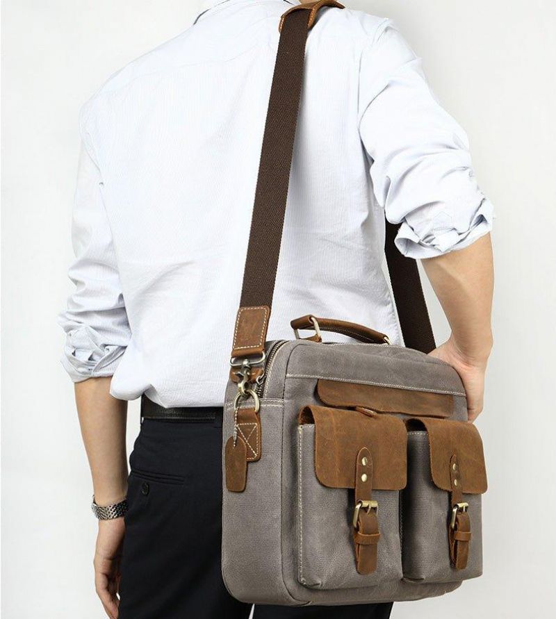 Férfi Laptoptáska Bőr És Vászon 14 Hüvelykes