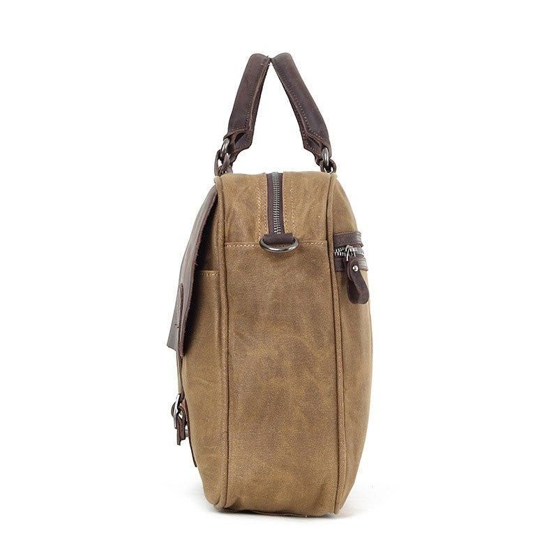 Száraz Viaszos Vászon És Bőr Aktatáska/Táska Laptopjához És Minden Napi Szükségletéhez.A Modell Alapját A Tartós Vízálló Anyag, A Minimalista Dizájn És A Különféle Zsebek Képezik.