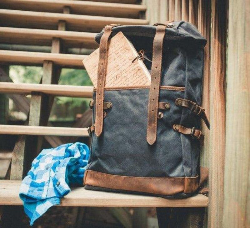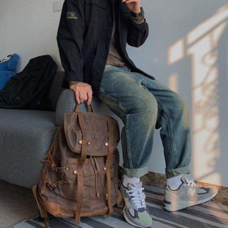 Férfi Vintage Viaszos Vászon Hátizsák Bőr