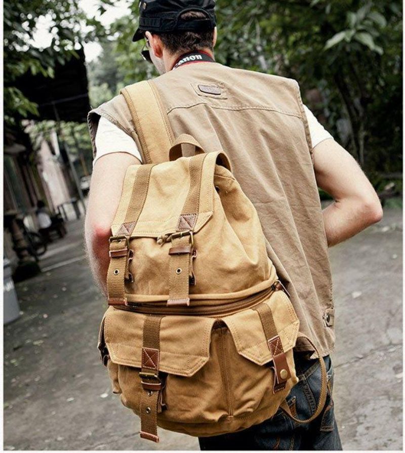 Katonai Stílusú Vászon Dslr Fényképezőgép Hátizsák