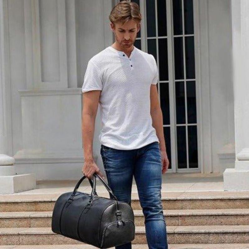 Modern Férfi Utazótáska Bőr Fekete