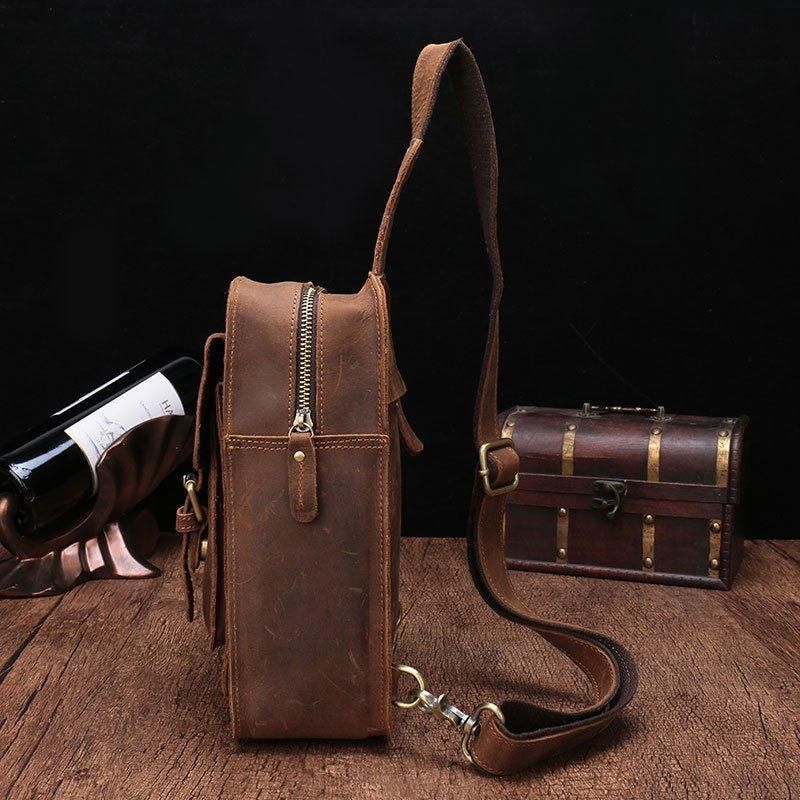 Az Elülső Zseb Retro Dizájnja A Bőr Táskát Még Vintagebbá És Divatosabbá Teszi. A Hevederes Táskánknak Van Egy Hátsó Zsebe, Amely Fontos Szerepet Játszik A Lopás Elleni Küzdelemben. .