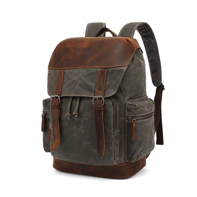 Vintage Bőr És Vászon Hátizsák Laptop Tokkal