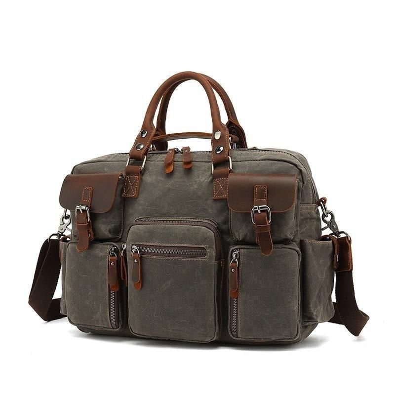 A Vintage Satchel Bags With Laptop Sleeve Stílusos És Funkcionális Táska, Tökéletes A Modern Ember Számára. Kiváló Minőségű Vízálló Vászon Anyagból Készült, És Klasszikus, Időtlen Dizájnnal Rendelkezik, Laptoptokjával, Amely Egy 15.6 Hüvelykes Laptopba Is Elfér, Így Tökéletes Minden Munkája És Műszaki Szükségletei Számára. A Táska Levehető Vállpánttal Rendelkezik A Könnyebb Hordozhatóság Érdekében. Ez A Táska Tökéletes Munkához, Iskolához Vagy Utazáshoz.
