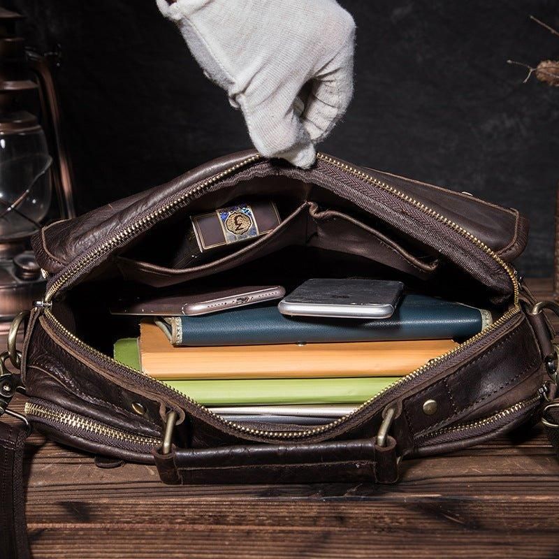 Ez A Futártáska Valódi Marhabőrből Készült, Kiváló Minőségű Cipzárral, Cipzárral, Bőrrel És Kiváló Kidolgozással, Kortárs Típustervezés, Vintage, Divat És Luxus