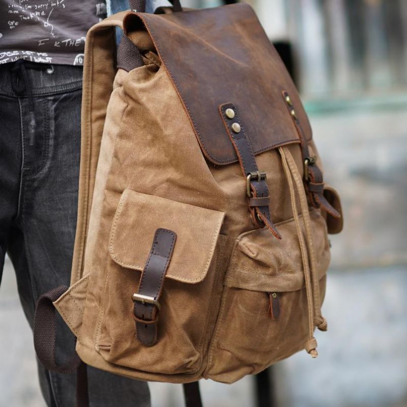 Vintage Viaszos Vászon És Bőr Hátizsák Utazás